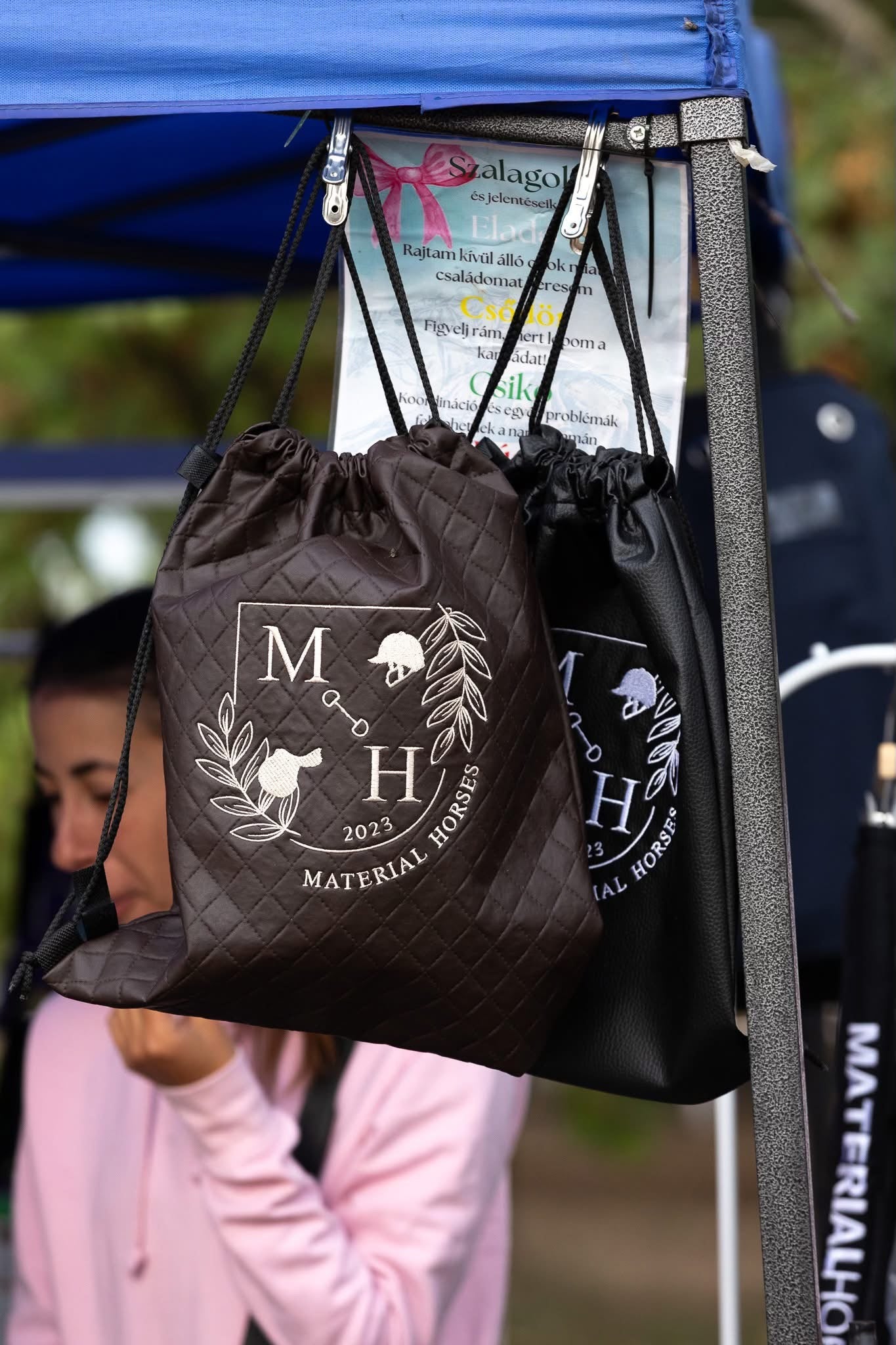A tornazsák, ami a lovardától az iskoláig elkísér! Ez a kézzel készült, Magyarországon gyártott prémium kiegészítő nemcsak kobaktartó zsákként szolgál a lovardai mindennapokban, hanem tornafelszerelésed stílusos tárolója is lehet az iskolában. A steppelt mintájú vegán bőr – mely teljes mértékben állatmentes anyag – a klasszikus lovas felszerelések eleganciáját idézi, így a lovas életérzés mindig veled lehet.
