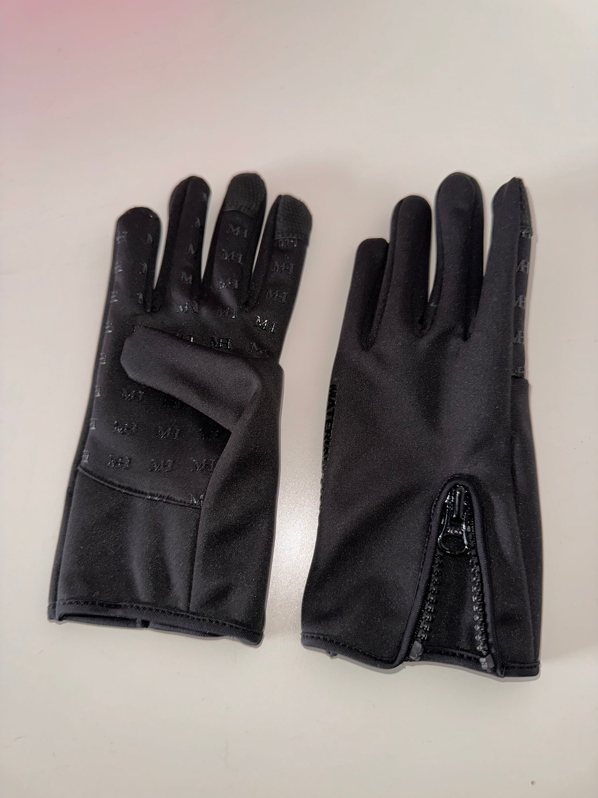 A tenyérrész erős, logónkkal díszített szilikon mintázattal készült, hogy biztos tapadást nyújtson a szárral. A kézfejen elhelyezett cipzár megkönnyíti a fel- és levételt, a kisujj vonalán pedig a Material Riders ikonikus logójával teszi egyedivé a megjelenést.