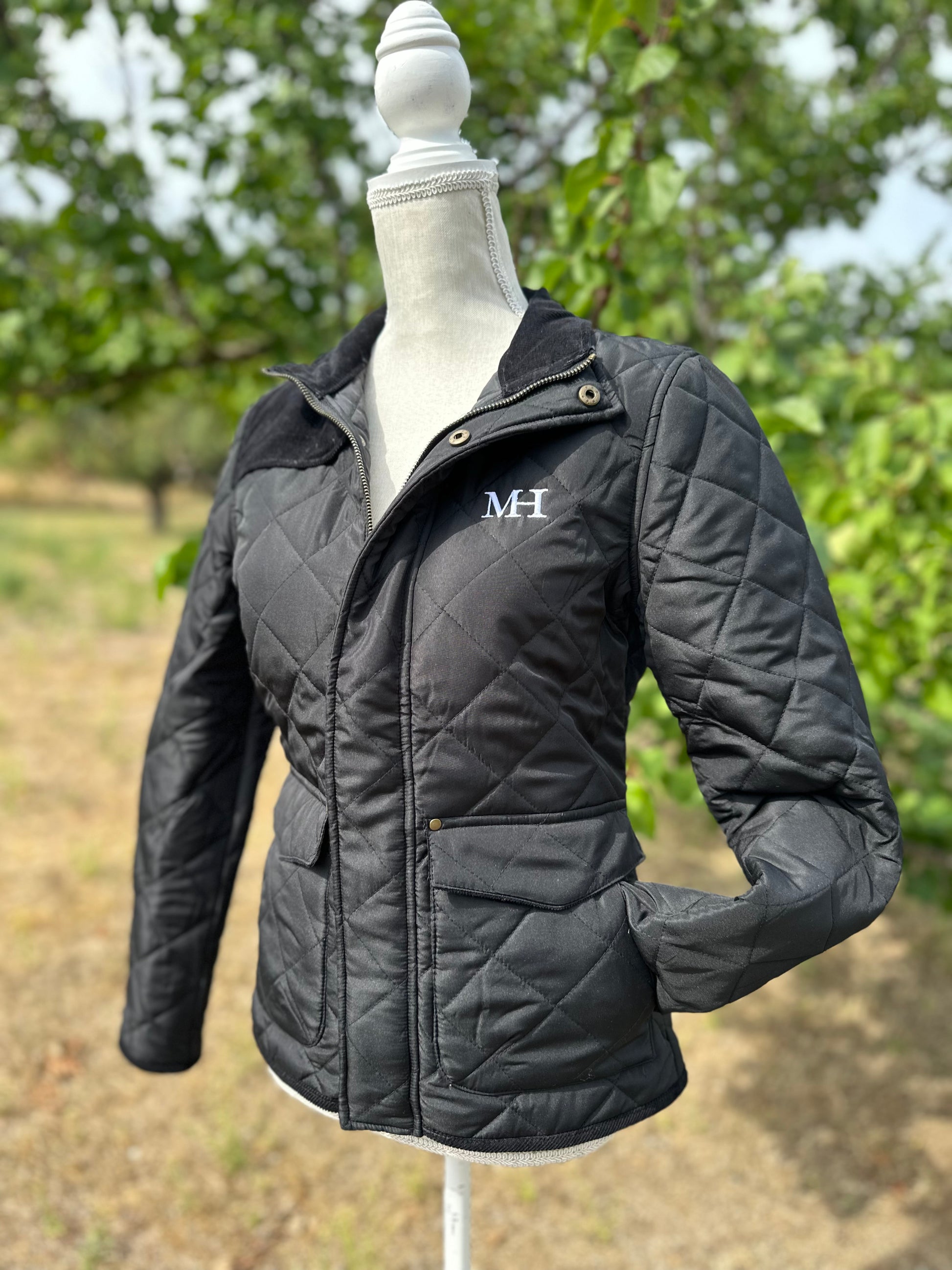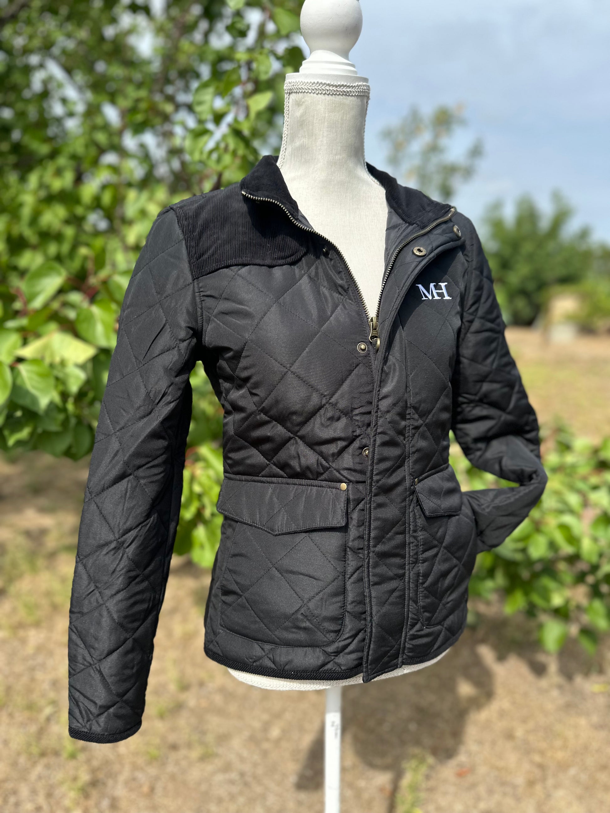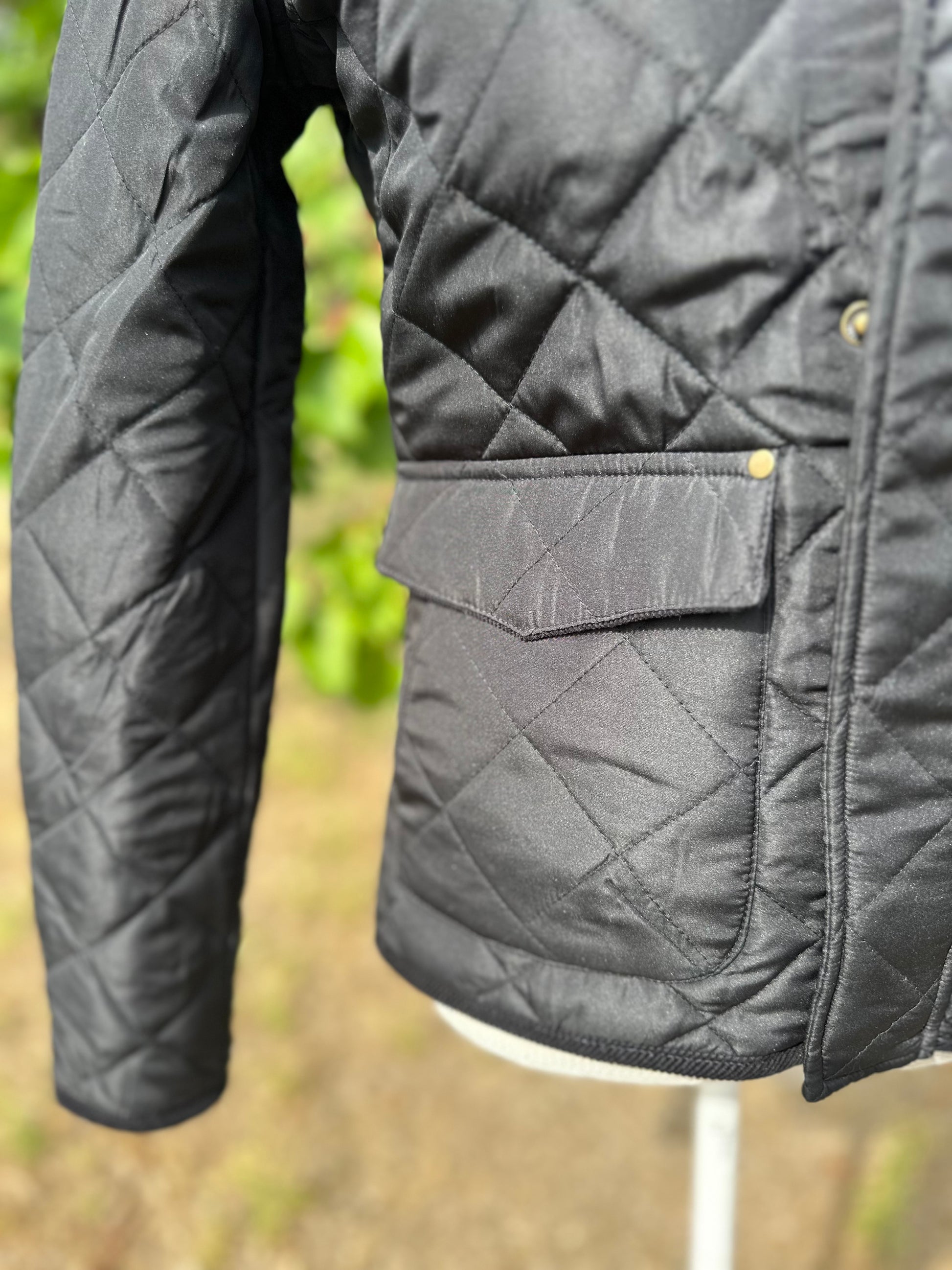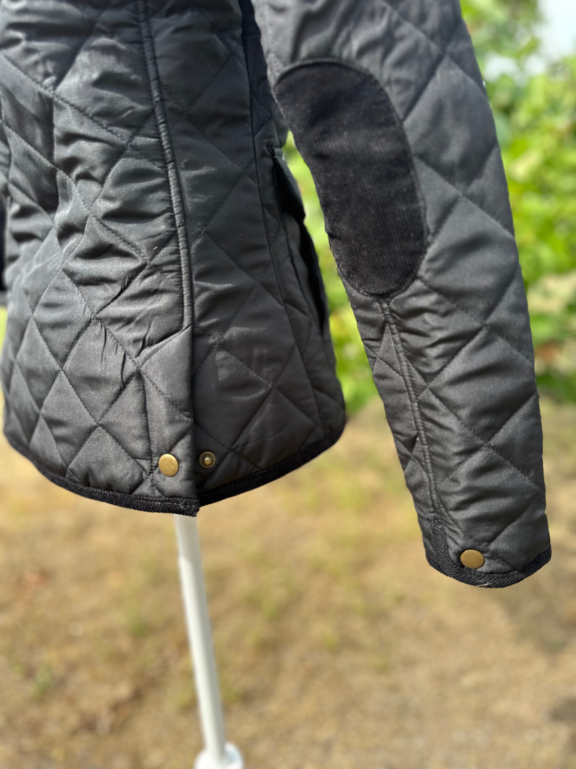Klasszikus angol vidéki stílusú steppelt lovas kabát
