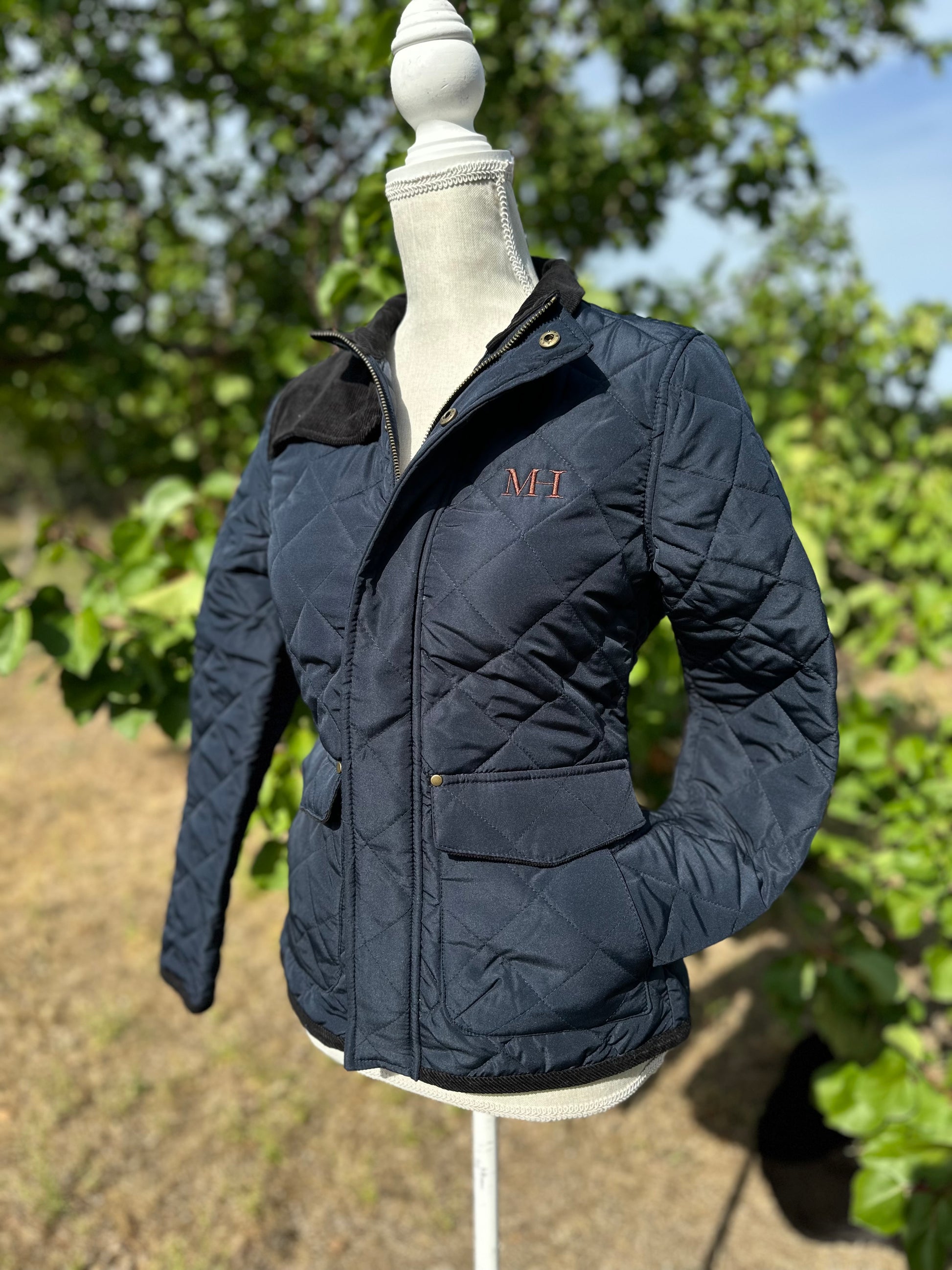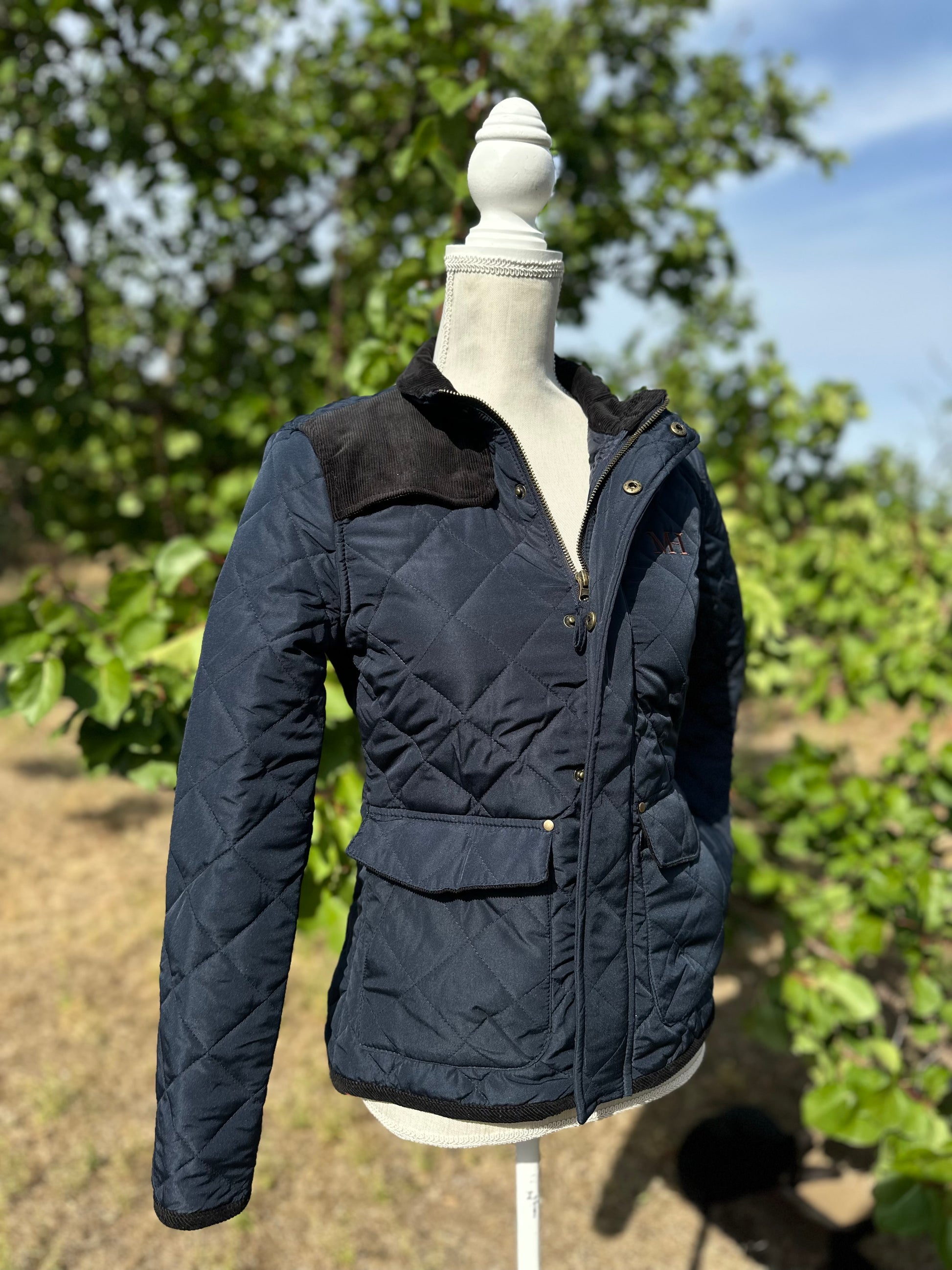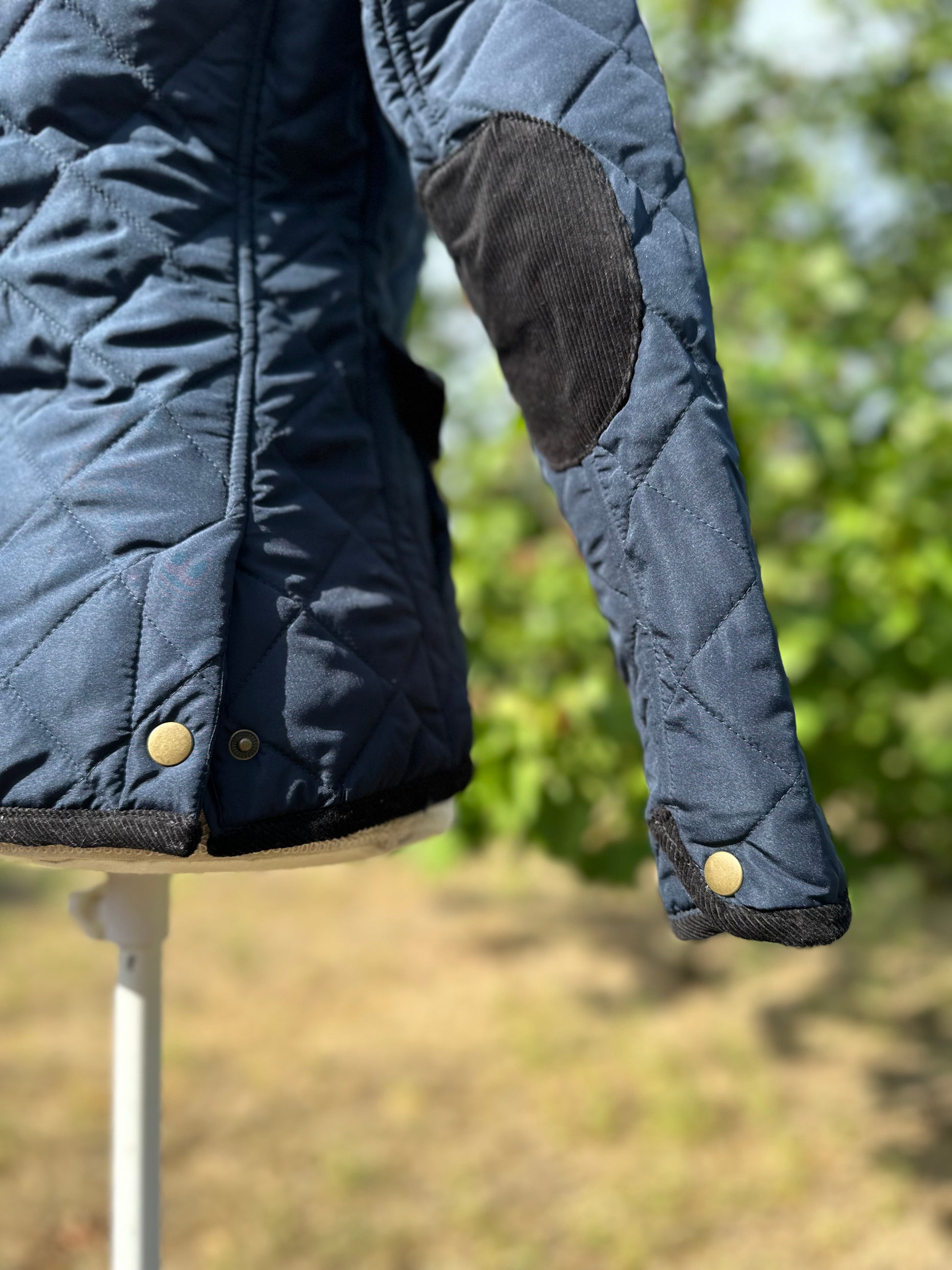 Klasszikus angol vidéki stílusú steppelt lovas kabát